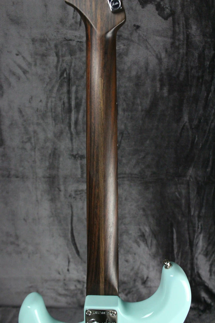 Body: Alder finished a gloss urethane Daphne Blue.