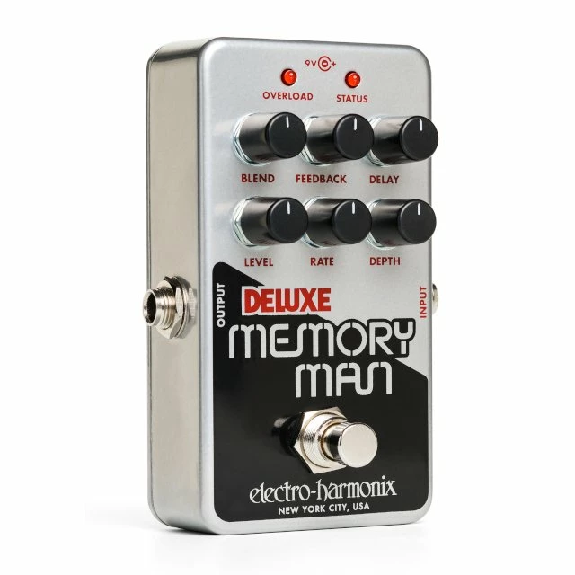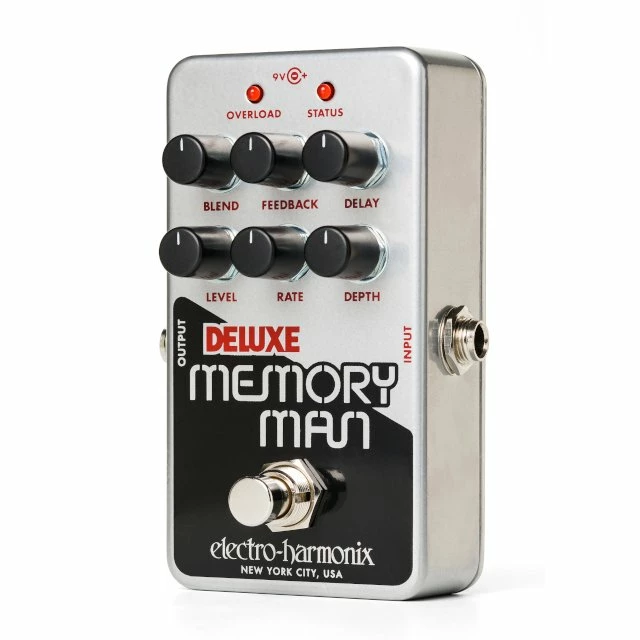 The Nano Deluxe Memory Man delivers EHXโs signature analog delay, chorus and vibrato plus some updates weโve added including both Rate and Depth knobs for enhanced modulation control. It features a maximum delay time of 550mS, an internal user-accessible switch to turn delay tails on or off, true bypass switching when the tails feature is off and it comes equipped with a standard 9Volt power supply. For over 44 years the Deluxe Memory Man has been the gold standard for analog delay and modulation. Now itโs available in an ultra-compact package!