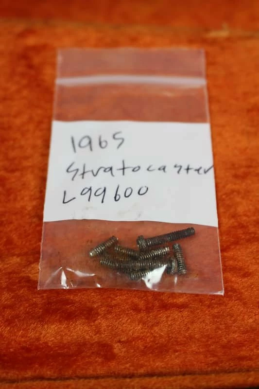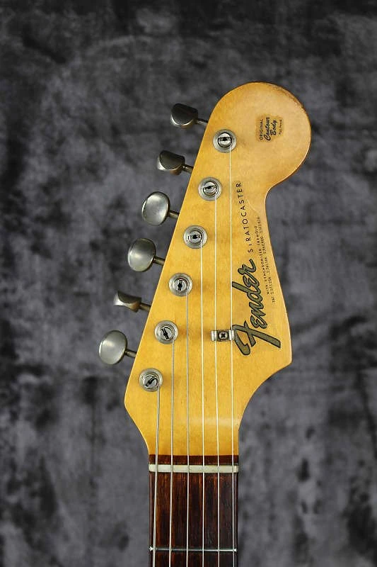 This Strat has been well cared for all of its life but was obviously played quite a bitโฆ.evident by the well-worn feeling neck. The neck feels incredible, the grey bottom pickups sound phenomenal and the original frets still have tons of life left in them. Our in house guitar tech just replaced a few of the stripped and rusted saddle-height-adjustment screws and intonation screws so we could get it setup just right for optimal playability, sustain