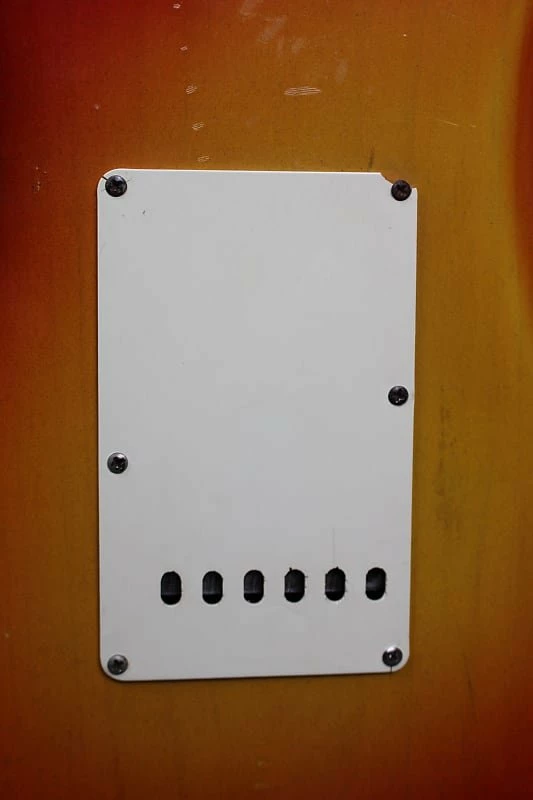 Modifications: Pickguard has been replaced but the original is included in the case. 8 of the 12 saddle height screws and 2 of the intonation screws were stripped out so we replaced them but they are also included in a bag in the case.