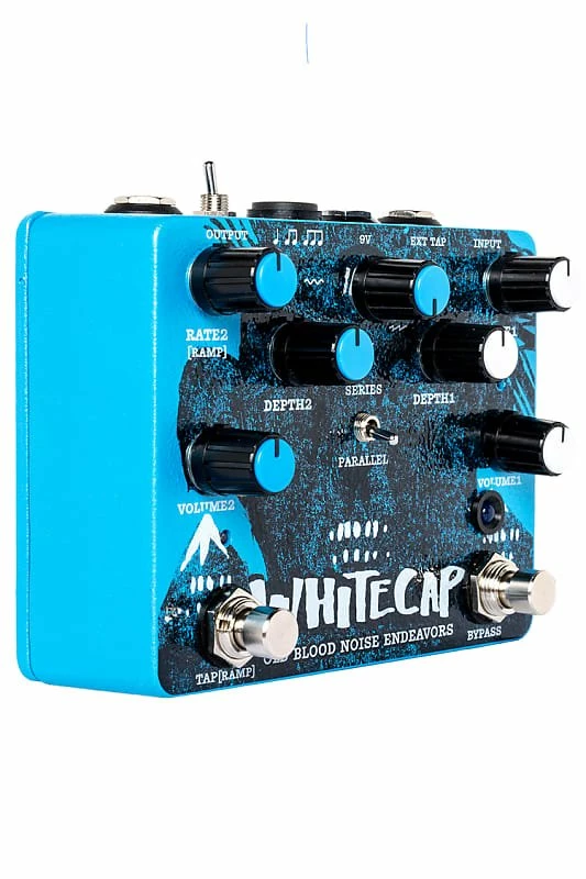 Combining a three-control analog tremolo and a multi-shape digital tap tremolo, the Old Blood Noise Endeavors Whitecap tremolo lets the user find new tremolo textures by combining the two sounds in series or parallel. Quick chops, slow ramps, asynchronous modulations, smooth sines, phase flipped undulations, textural rhythmic drifts – itβs all there in the Whitecap.
